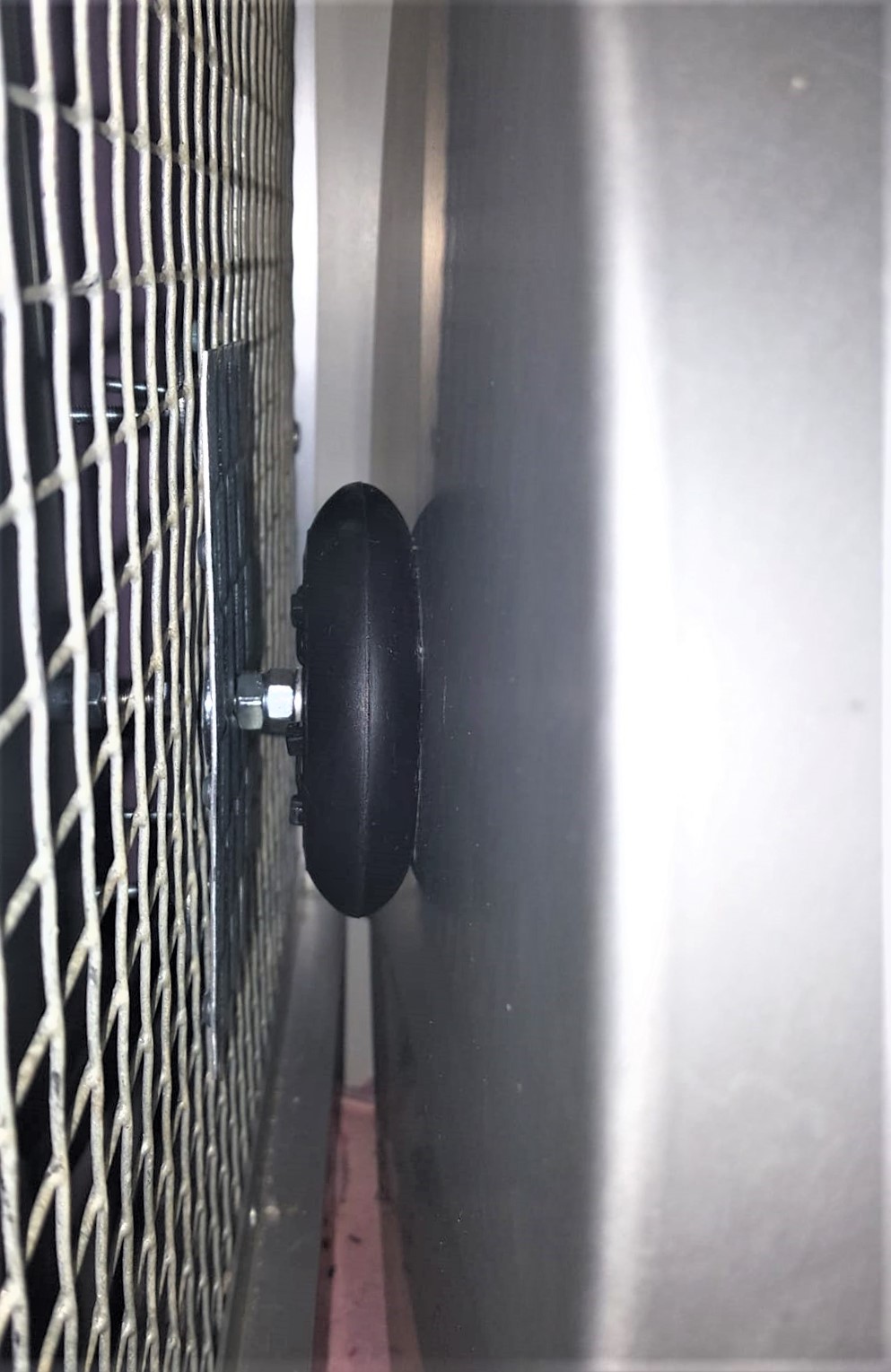 Je bevestigd het loopwiel op 5 verschillende punten aan je tralies door middel van het  super stevige metalen ophangsysteem. Door de 5 punten wordt de druk op de tralies goed verdeeld. De bevestigingspunten zijn verplaatsbaar, zodat het altijd op jouw tralies past! Het ophangsysteem is volledig van metaal en dus volledig knaagproef!