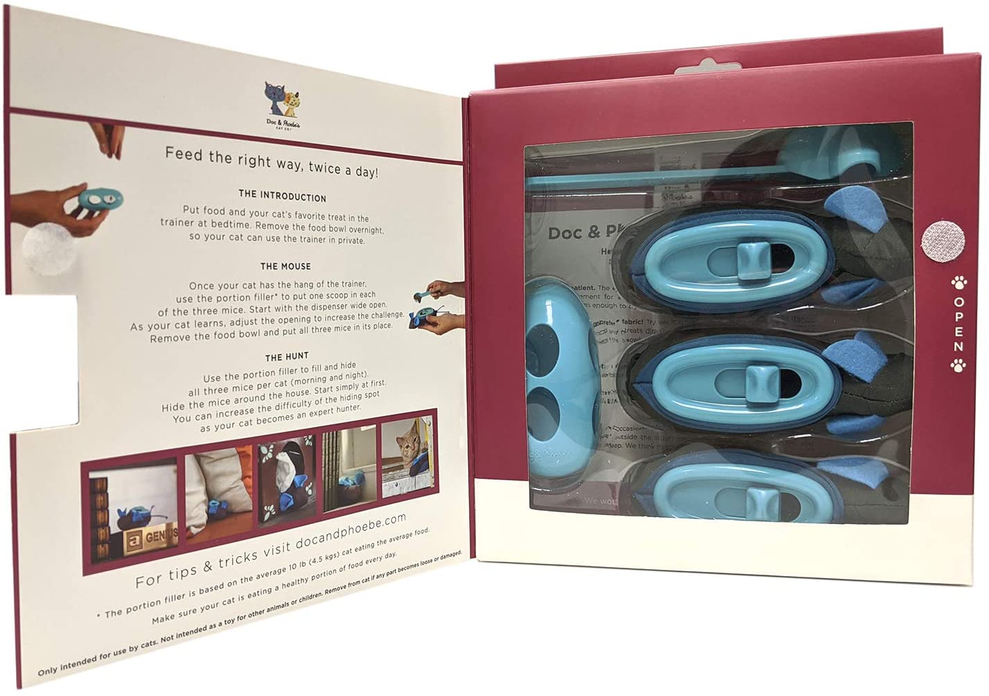 De Hunting Feeder Muizen zijn ontwikkeld in samenwerking met dierenartsen en vrij van giftige stoffen. Ze zijn vaatwasserbestendig en kunnen gemakkelijk gereinigd worden. De set wordt geleverd inclusief schepje om de muizen gemakkelijk te vullen.