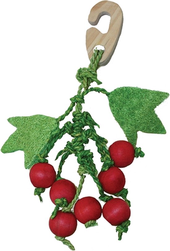 Het speeltje, met houten hanger, is gemakkelijk te bevestigen aan de kooi. Hij past prachtig in een natuurlijke inrichting of bij een vrolijke kerst-sfeer!